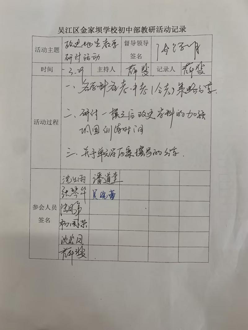 金家坝学校初中部政史地生组教学研讨活动简讯