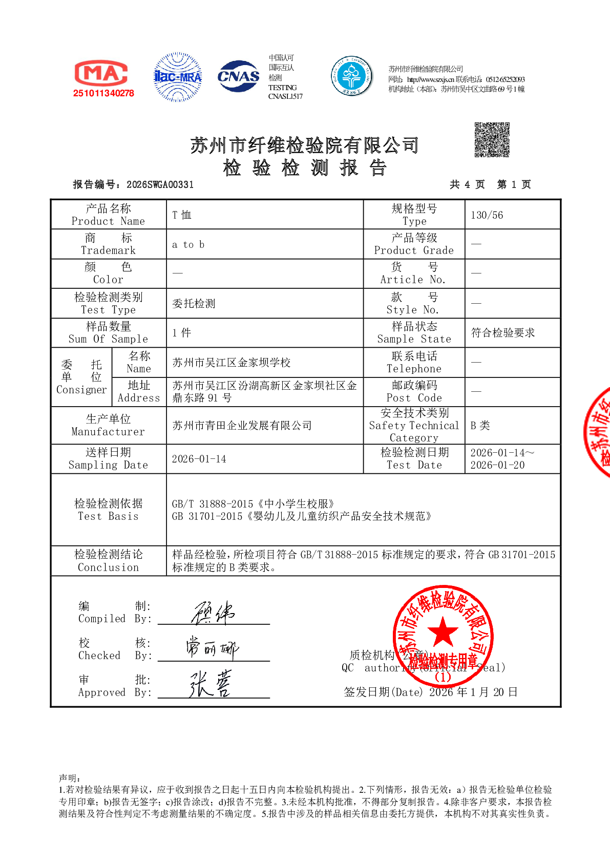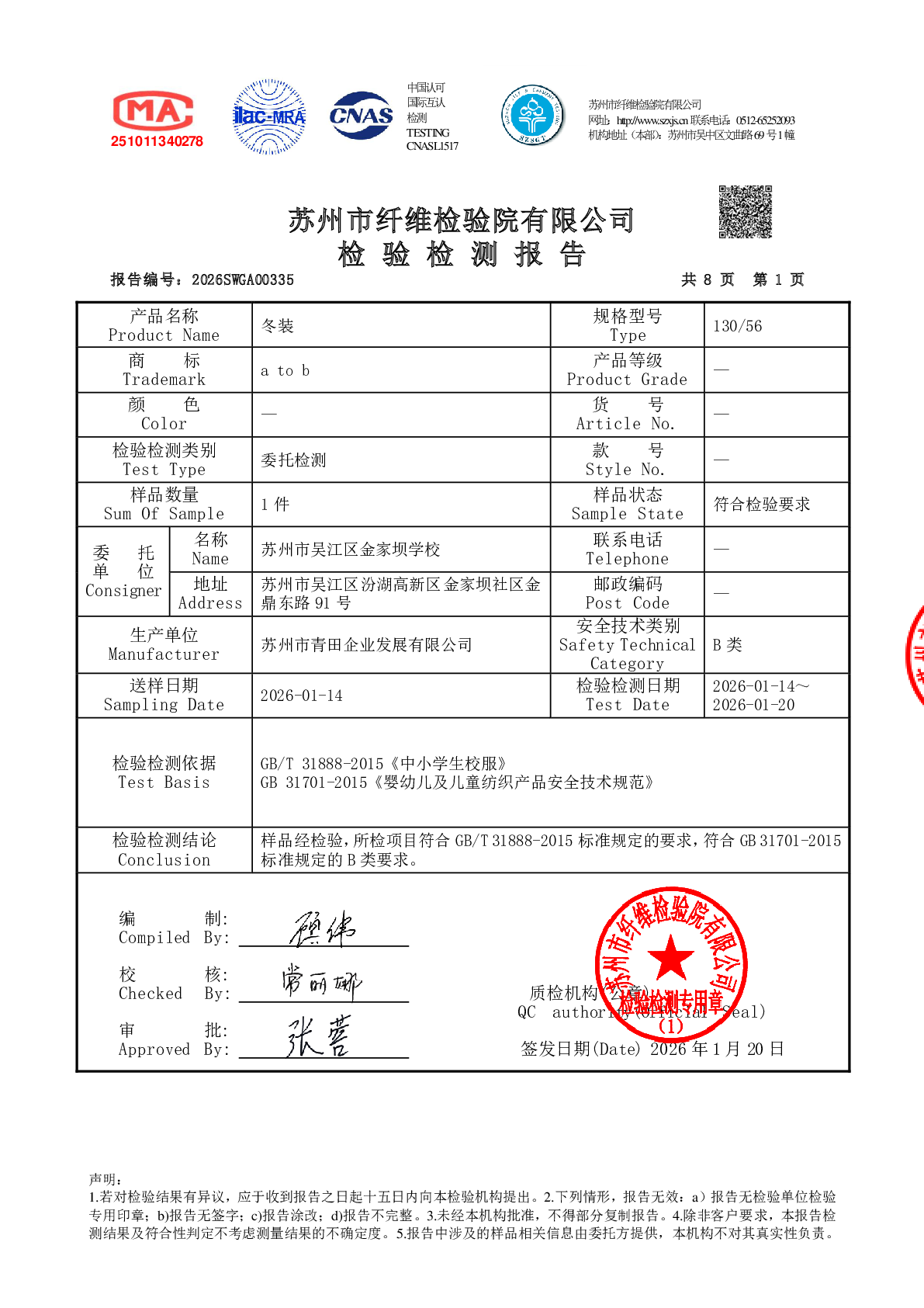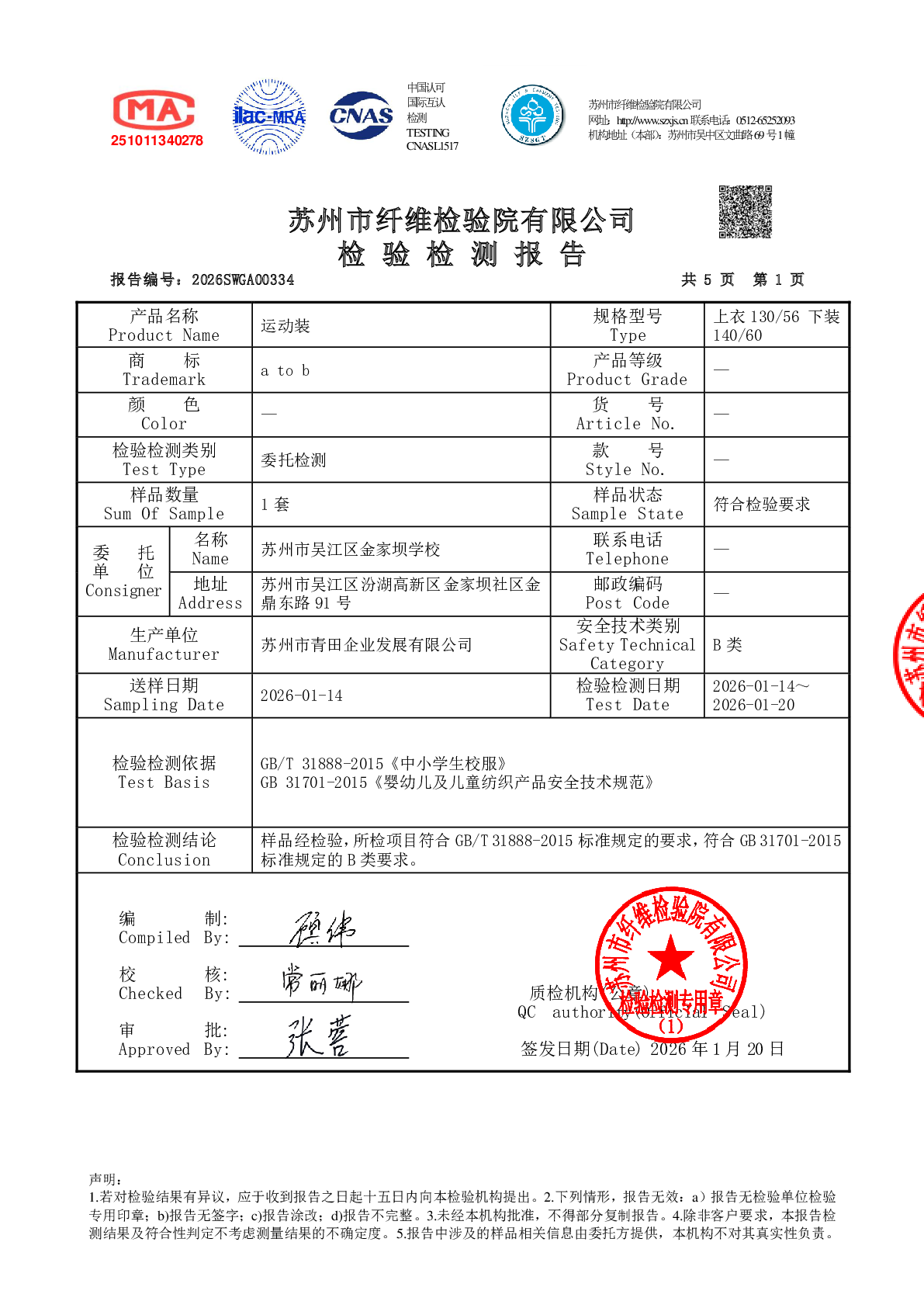 苏州市吴江区金家坝学校2025-2026学年校服采购方案